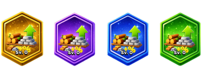 There are 4 different card types: Green, Blue, Purple, and Gold. This card type increases the amount of lumber and metal you earn from orders based on the card's rarity.